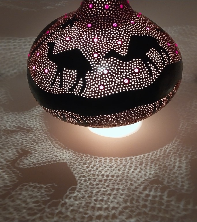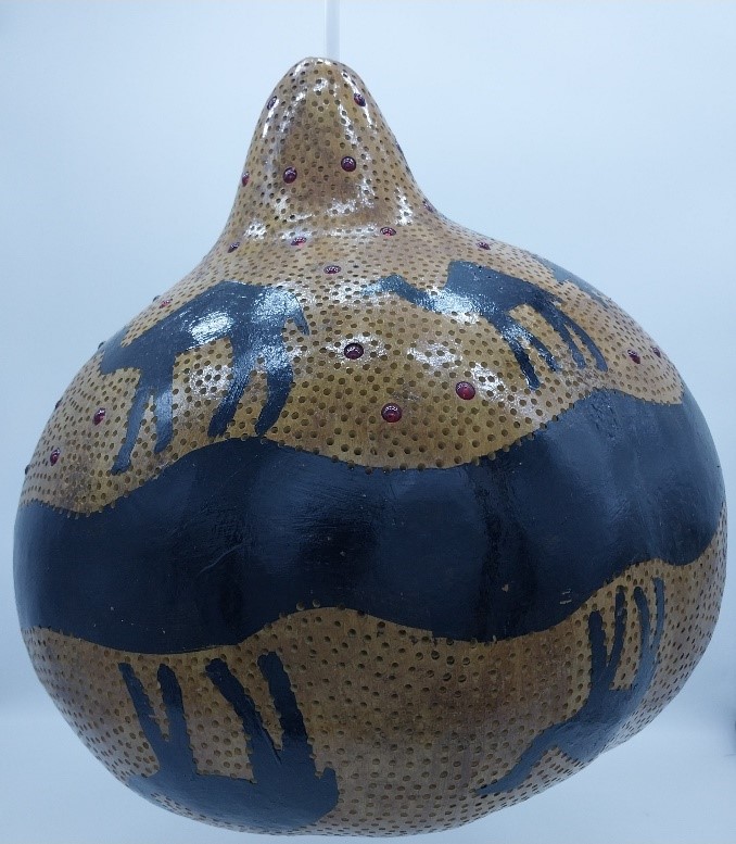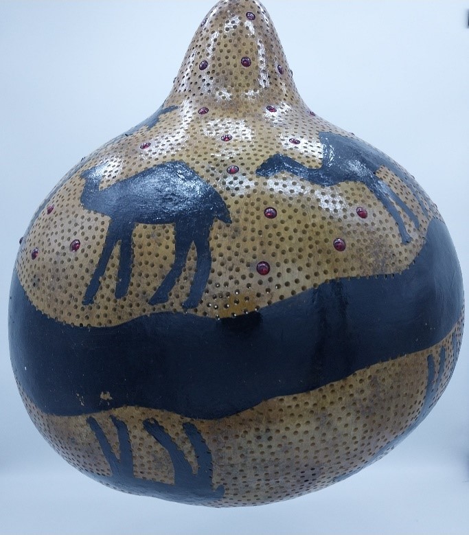 Su Kabağı, tamamen el işlemesi, metal veya ahşap altlıkla Çevresi 80 – 90 cm